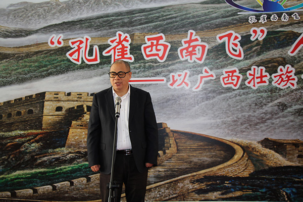 “孔雀西南飞”研究团队总联系人江东洲出席授牌仪式并讲话。